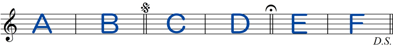 D.S.(ダル・セーニョ)と書かれている場所まで演奏したら、
