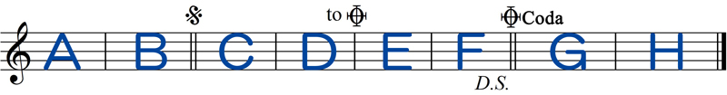D.C.(ダ・カーポ)とD.S.(ダル・セーニョ)、Coda(コーダ)が、全て出てくる曲もあります。ごちゃごちゃにならないように覚えましょう。