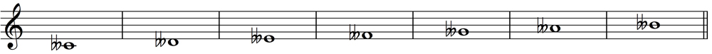 2ダブルフラットによって、♭(フラット)よりもさらに半音下げられた派生音の音名