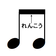 8分音符が2つ繋がった、この音符の図の部分は「れんこう(連鉤)」です。連桁と書いてあるものもあります。